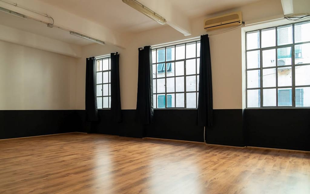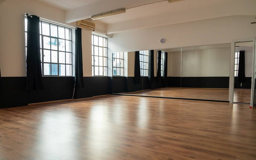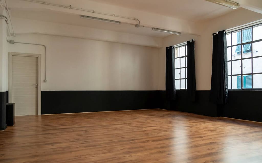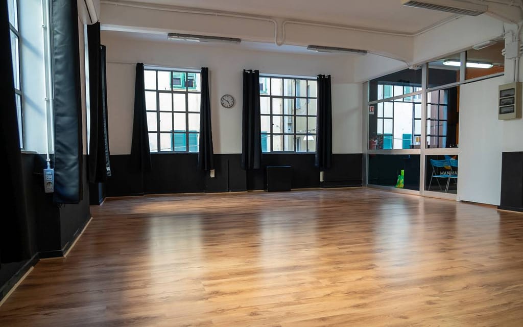 La nuova sede è dotata di due ampie sale prova completamente attrezzate, pensate per ospitare lezioni, workshop e spettacoli interni.